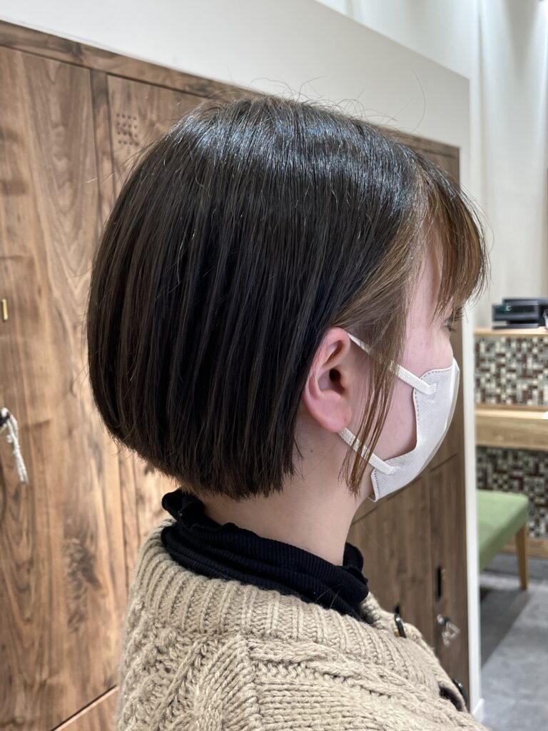 ミディアムのウルフスタイルからバッサリカットをして丸みのあるボブスタイルにしてインナーカラーで黄味をくすませるようにしました♪