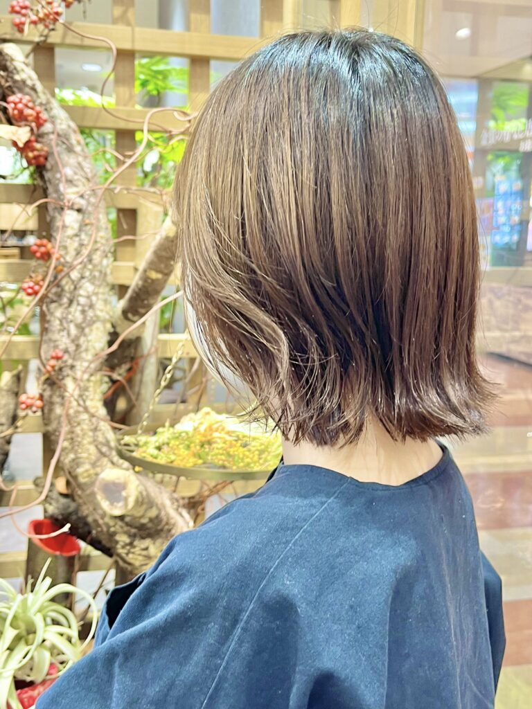 このスタイルは外ハネと内巻き両方楽しめるのでスタイリングもしやすいスタイルでございます(^^)