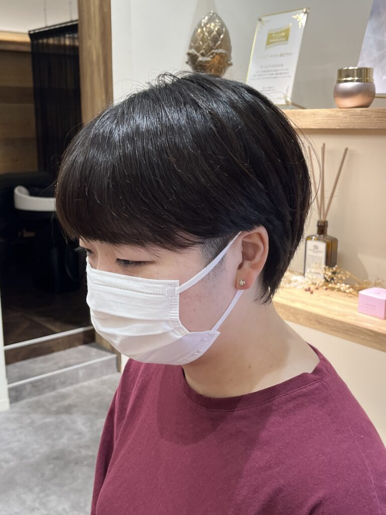 前回までは伸ばしていこうとしていましたがやっぱり短い方がいいとのことでよりスッキリできるようにツーブロックのご提案をさせていただきました♪