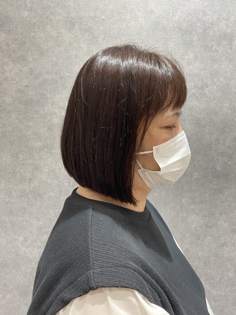 今回は、あまりレイヤー(段)を入れずに落ち着いた印象のボブスタイル。