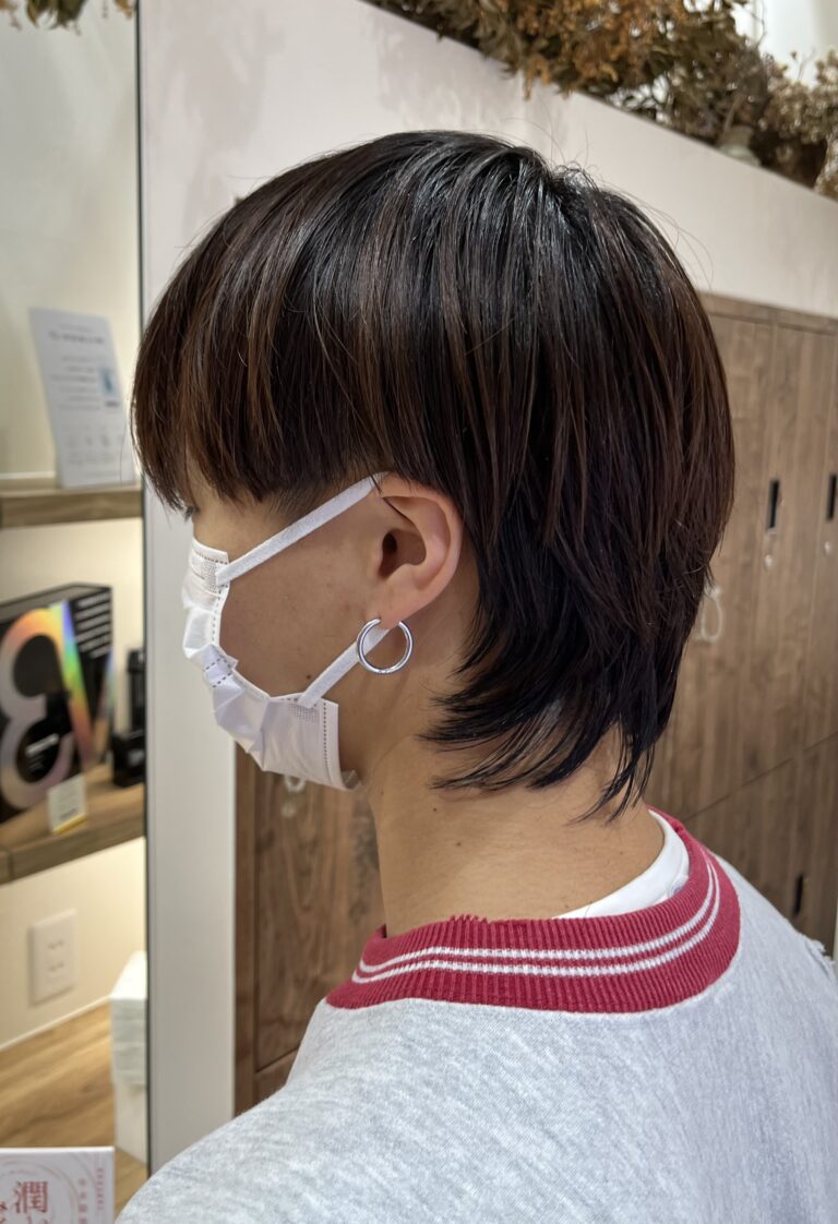 古着が好きな人なのでマッシュウルフで雰囲気をバッチリ出して髪型もオシャレにしました!