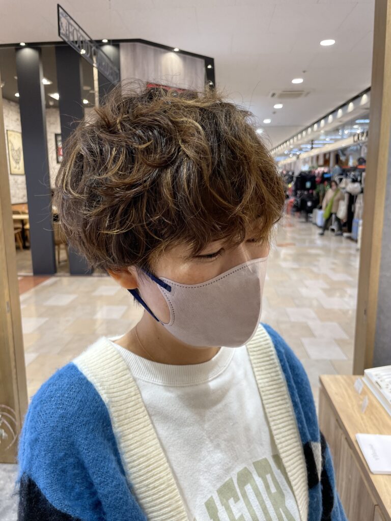 丸みのある柔らかい雰囲気と、ボーイッシュな活発さを感じるパーマでのカール感。よく似合ってます。